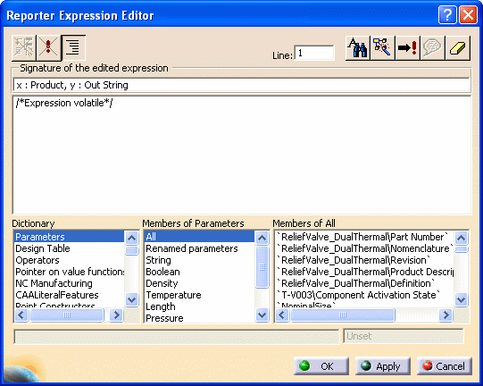 Use the Knowledgeware Expression dialog box to select an expression from the