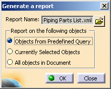 the report format you want to use (in this case Piping Parts List.xml). |